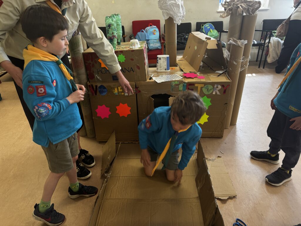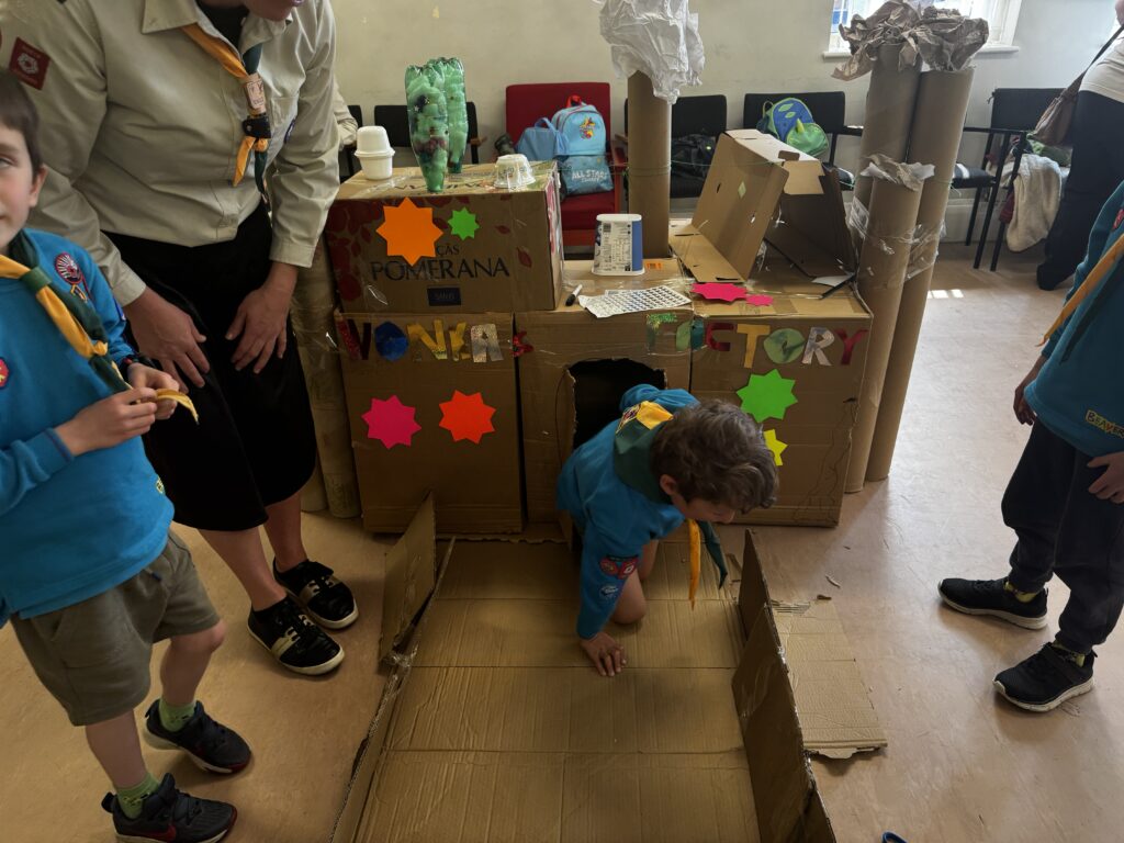 Our Beaver scouts won the 2025 Handicraft competition for the second year running. The group entered a James and the Giant Peach Model made over several sessions and measured a whopping 1m in diameter , On the day the Beavers that attended the event Junk Modelled Willy Wonka’s Factory, created a Wonka biscuit